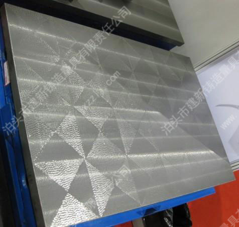刮研是利用刮刀、基準表面、測量工具和研磨膏,以手工操作的方式,邊研點邊測量,邊刮研加工,使工件達到工藝上規定的尺寸、幾何形狀、表面粗糙度和密合性等要求的一項精加工工序。由于使用的工具簡單,通用性比較強,加工余量少,而達到的精度非常高,因此廣泛地應用在機器和工具的制造及機械設備的修理工作中。通常機床的導軌、拖板,滑動軸承的軸瓦都是用刮研的方法作精加工而成的。鑄鐵平臺也有刮研的,小的平臺(1000*2000以下的)還可以,但是大一點的平臺(1500*2000以上的)因為面積較大,費用非常高。